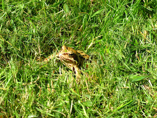 This past weekend, I had the great pleasure of being a guest at Ashe Park, just outside of Steventon in Hampshire. My friend, Laura, from the BB2B walk, has been inviting me to visit since November, and I've been rather slow about getting around to it, but I am so glad I finally did. I enjoyed visiting with Laura and her family and the house and grounds are amazing. I was able to accompany them on several walks. Two around the grounds of Ashe Park, which included visits to the pond, a copse, and some sheep. They've been letting the grass grow a bit longer--much to the chagrin of the gardeners who think it looks untidy--to encourage insect life. I think it's working. We saw many butterflies, including some common blue, bees, flies, grasshoppers, and moths. They also have a ton of mini frogs, soon to grow to be toads. The toads make their way to the pond at the right time of year to lay eggs. Then come summer, these adorable, finger-nail sized, little frogs leave the pond and spread across the grounds in all directions. There are so many and they are so small that one has to be careful where one steps. Laura said the gardener hates mowing the lawn this time of year.